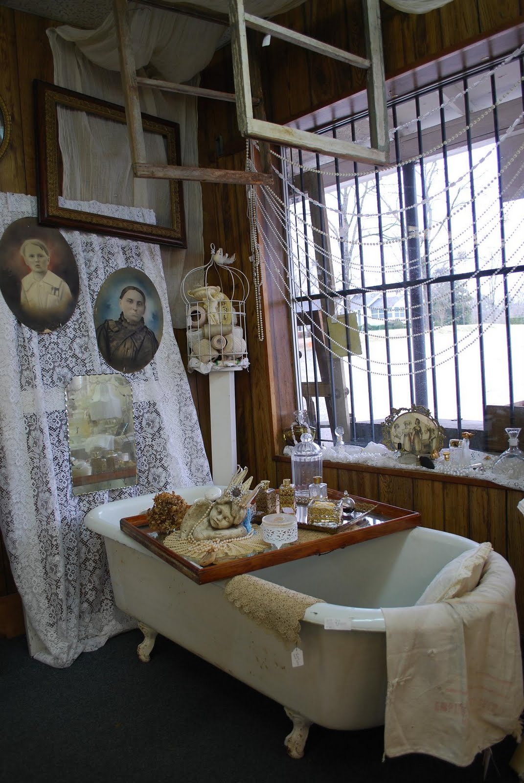 Here is a photo of the claw foot tub we got in the shop a week r two ago. It is a 6 foot tub for $350.00. I love tub baths and this would be a dream come true for me, but we are not ready to update at our house. I saw the bead hanging in the window of a shop in town during Christmas and thought it looked like a necklace. So I had to copy it for my window. How did it turn out? Check back next week for another Vendor Spotlight.